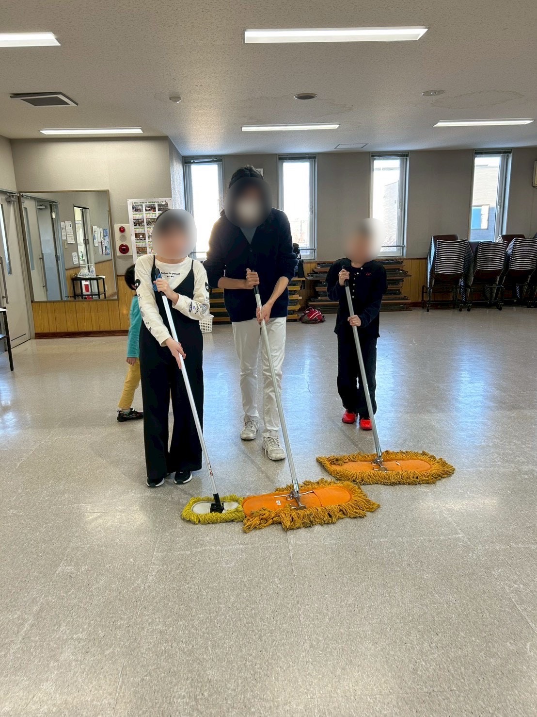 そして最後はみんなで1日使ったホールの掃除です。感謝の気持ちを込めて一生懸命行うことができました✨