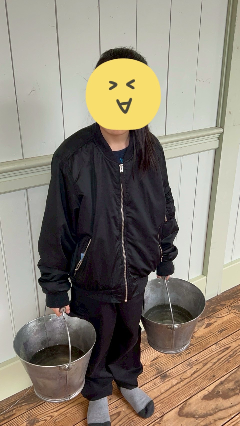 忘れ物をしたり遅刻をしたらバケツを持って廊下に立っていたと聞き、驚く子どもたちでした笑!