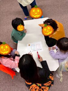 『ハロウィン』ってなんだろう?と質問すると『お菓子をもらう日ー!』と元気に答える子供たち…。