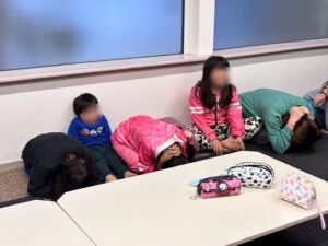 地震については緊急地震速報の音が鳴った途端、遊びや勉強をすぐ止めて先生の指示に従い避難することが出来ました。