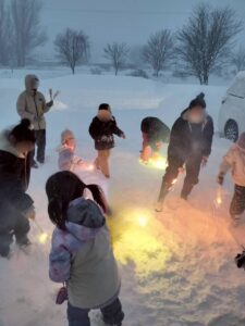 雪の中での花火は夏と違いまた一段と綺麗で子供たちも「もう一回!」「またやりたい!」と楽しんでいました。