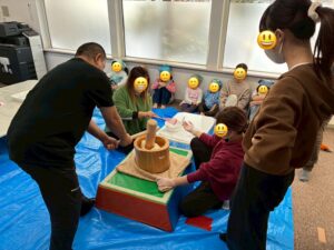 子供たちと一緒に餅つきを行いました。